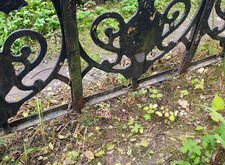 В данном заказе мы столкнулись со следующей проблемой: из металлического ограждения, опоясывавшего периметр участка, была украдена секция. Нижняя же часть ограждения практически полностью прогнила, а потому и остальные элементы узора грозили в скором времени банально выпасть.